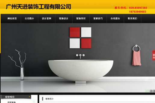 廣州天進裝飾工程有限公司專業從事酒店賓館、豪華別墅、寫字樓辦公室、棋牌沐足,商場形象店、餐飲酒樓、美容娛樂夜總會、樣板房售樓部、網吧廠區、學校醫院、連鎖專賣空間、商業商鋪空間的設計、施工及配套建設服務的大型知名裝飾企業,20年來,以立足廣州,輻射全國