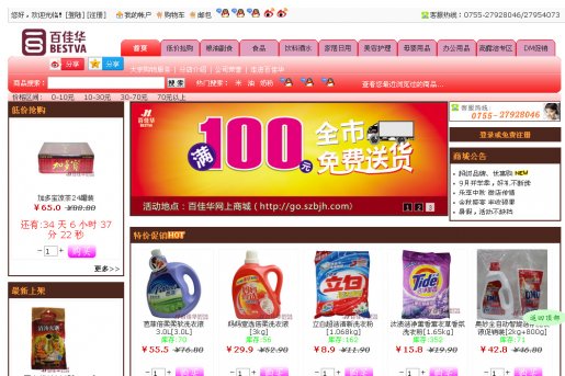 百佳華網上商城 佳華商場全稱為深圳市百佳華百貨公司。公司為佳華百貨控股有限公司全資附屬公司。 深圳市百佳華百貨有限公司成立于1995年,是一家由中國商務部批準成立的外商獨資企業,注冊資金22040萬元。其控股股東莊陸坤及其家人。目前,公司在深圳、東莞、佛山及廣西等地 查看案例介紹