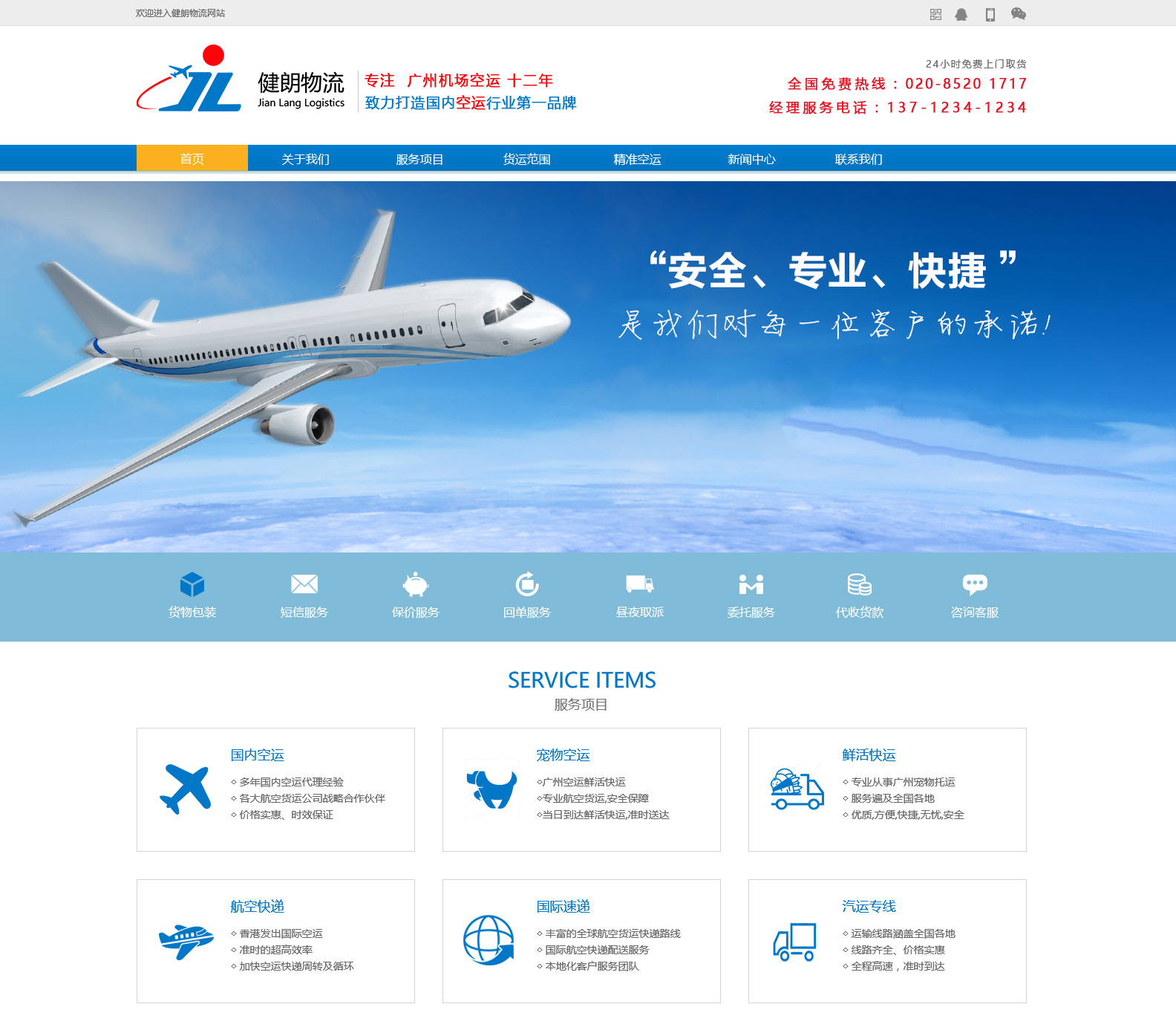 健朗物流,從上門取貨到您滿意簽收,全程主動跟蹤服務!健朗物流空運部有高素質的客服人員,經過嚴格篩選和長期培訓,業務熟練。與國內各大航空貨運公司以及世界各地多家國際航空貨運公司均有緊密的合作關系。服務地區:廣州、深圳、佛山、中山、清遠、茂名、云浮