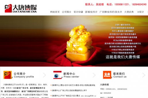 大唐傳媒 大唐傳媒成立于2000年3月,是一家集策劃、設計、印刷、拍攝、制作、安裝、維護為泰安廣告公司、泰安影視宣傳片公司、泰安宣傳畫冊設計、泰安廣告牌宣傳欄設計的綜合性廣告公司,在短短的幾年里,專業服務質量等方面創下了輝煌業績。我們的口號是“不重復過去, 查看案例介紹