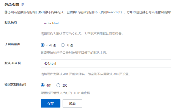 默認首頁就填寫我們上傳的index.html,默認404頁就填寫404.html,我們可以上傳一個404文件,當網(wǎng)站打開錯誤的頁面時,就會顯示這個404頁面,填寫后如下圖所示: