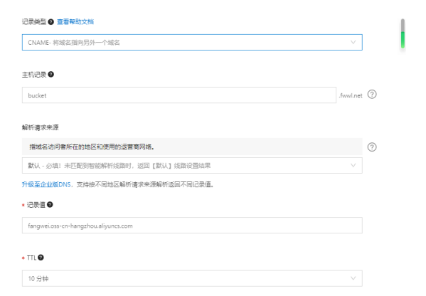 假設(shè)OOS存在與域名不在同一個賬號,則需要解析域名,需要添加的解析記錄如下圖所示: