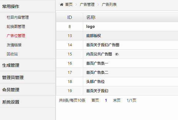 6.1?對(duì)相對(duì)固定的內(nèi)容進(jìn)行添加修改,如頭部底部logo、頭部底部電話(huà)、底部版權(quán)信息、底部二維碼、首頁(yè)廣告條 內(nèi)頁(yè)固定廣告圖、內(nèi)頁(yè)左側(cè)或右側(cè)聯(lián)系方式等等(如下圖)