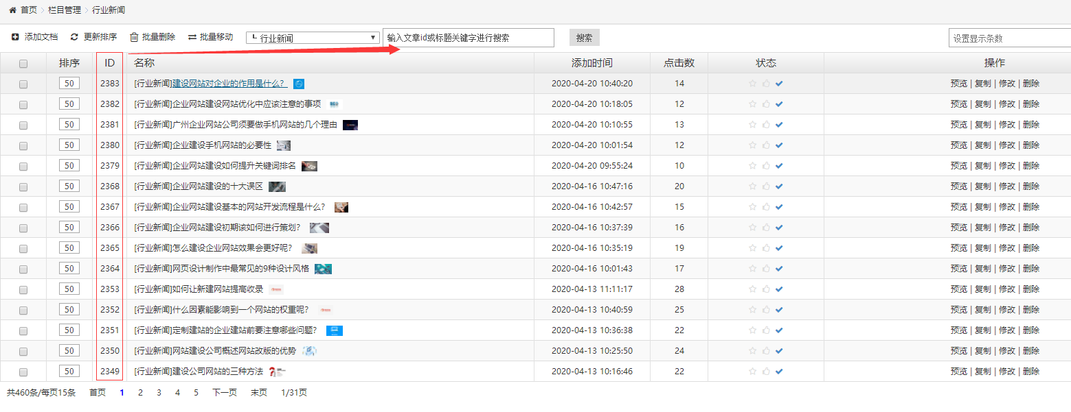 在前臺(tái)如果想修改某個(gè)產(chǎn)品或則新聞文章,但是列表比較多,逐一找比較麻煩,把鼠標(biāo)移到想要修改的產(chǎn)品或新聞文章標(biāo)題上,電腦左下角會(huì)出現(xiàn)這個(gè)產(chǎn)品或新聞文章的ID號(hào) 然后在后臺(tái)產(chǎn)品中心或新聞信心列表頁(yè)面,輸入ID號(hào)碼,可以查找到這個(gè)ID號(hào)對(duì)應(yīng)的產(chǎn)品或新聞文章。