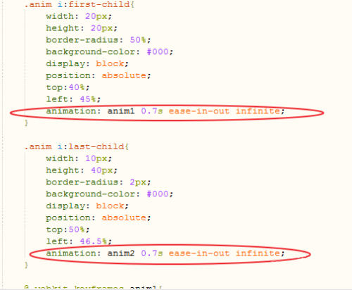 在兩個i標簽的屬性里調用動畫,更后加上infinite循環就可以了。