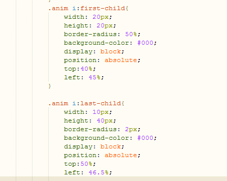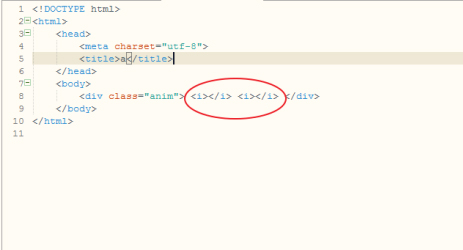 首先寫出一個div,指定一個class,然后再寫出兩個i標簽,作為我們動畫的實體。