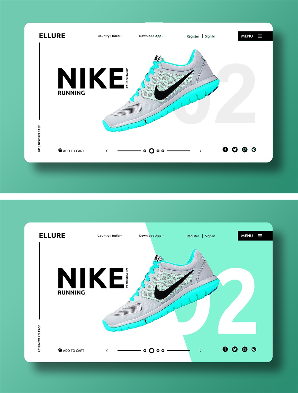 同樣是產品+文案,上下的差距一目了然,之所以會呈現出這樣的視覺感受在于對留白的運用,也就是視覺比例關系,當整體比例關系運用得當時,哪怕只是產品和文案,不添加任何輔助元素和效果,也不會給我們「空」的視覺感受;各個元素的視覺比例不恰當也會是造成畫面「空」的原因之一。