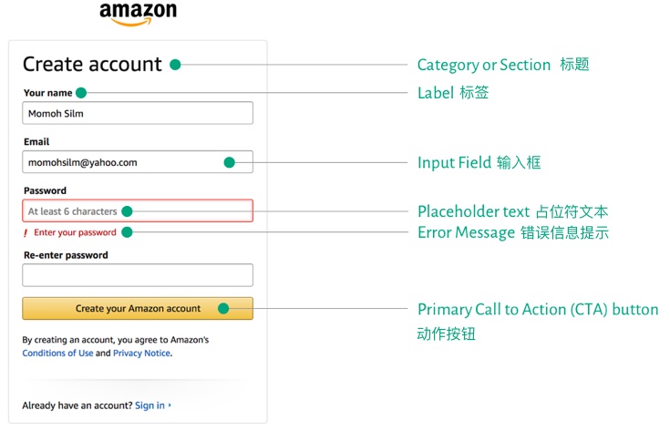 要將標(biāo)簽放置到輸入框上面(像上面所解析的 Amazon 的表單一樣)。不要把占位符文字作為輸入框的標(biāo)簽,那樣的話用戶輸入完成后將看不到標(biāo)簽,用戶將很難對已輸入的內(nèi)容做最終的核對,會讓他們思考很多。
