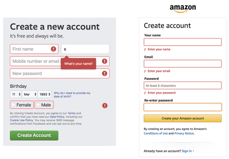 △ Facebook和Amazon采用了兩種不同的驗(yàn)證反饋方式